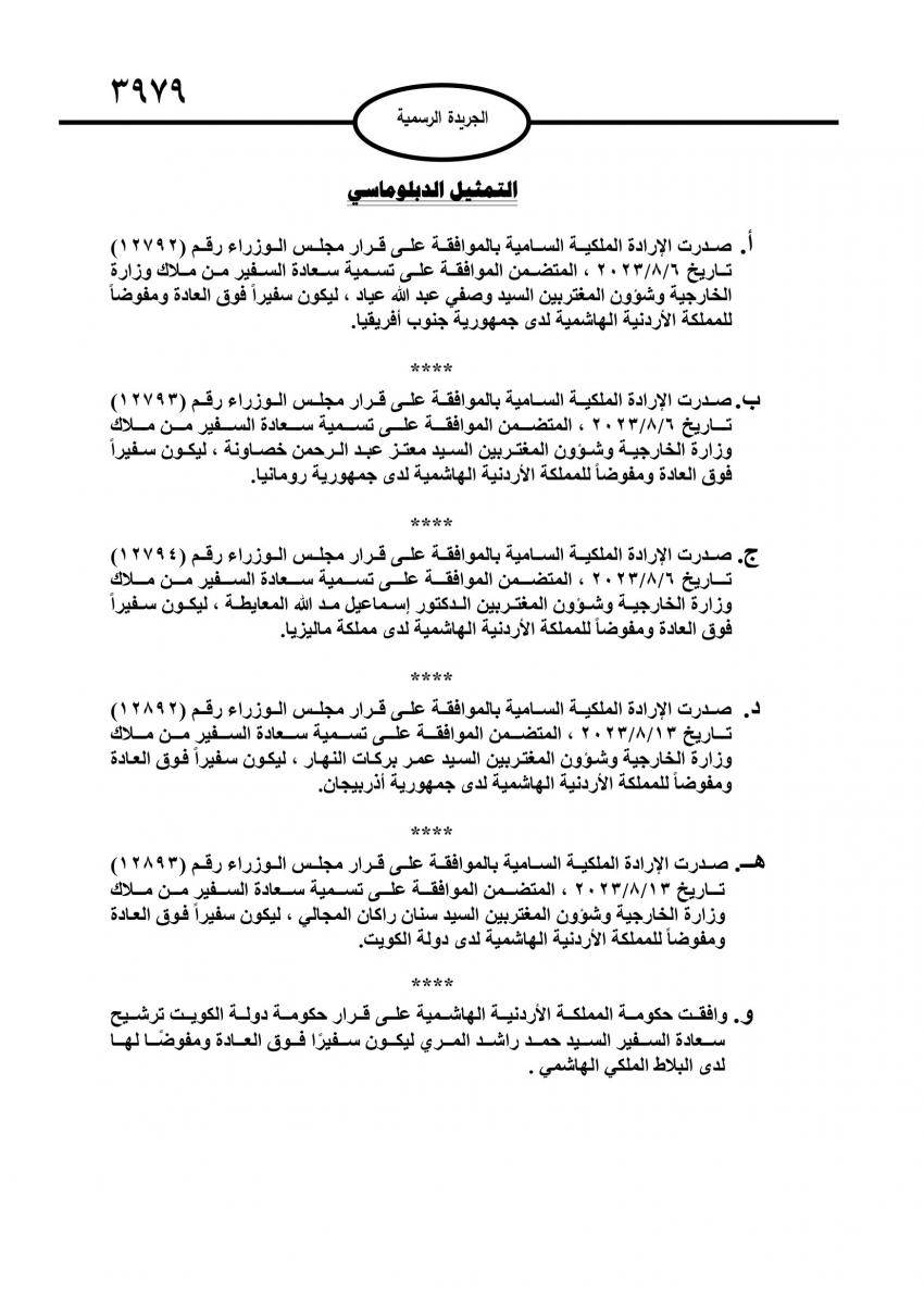 الراي نيوز  - صدر في عدد الجريدة الرسمية اليوم الخميس الارادات الملكية السامية بتسمية 5 سفراء جدد في مواقع مختلفة.