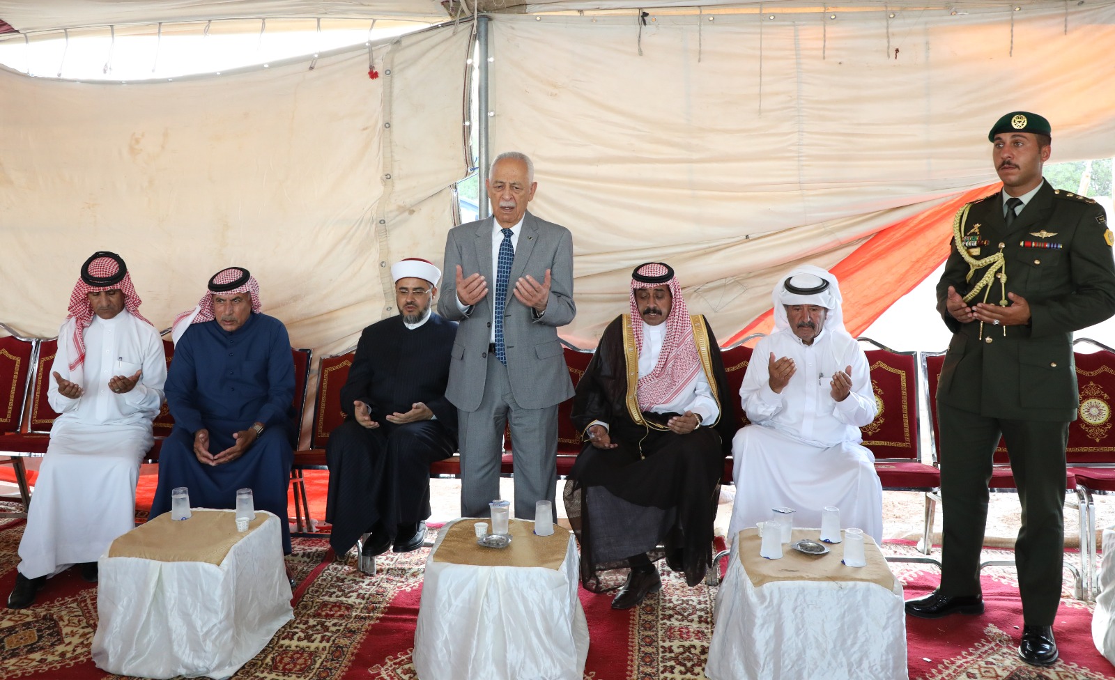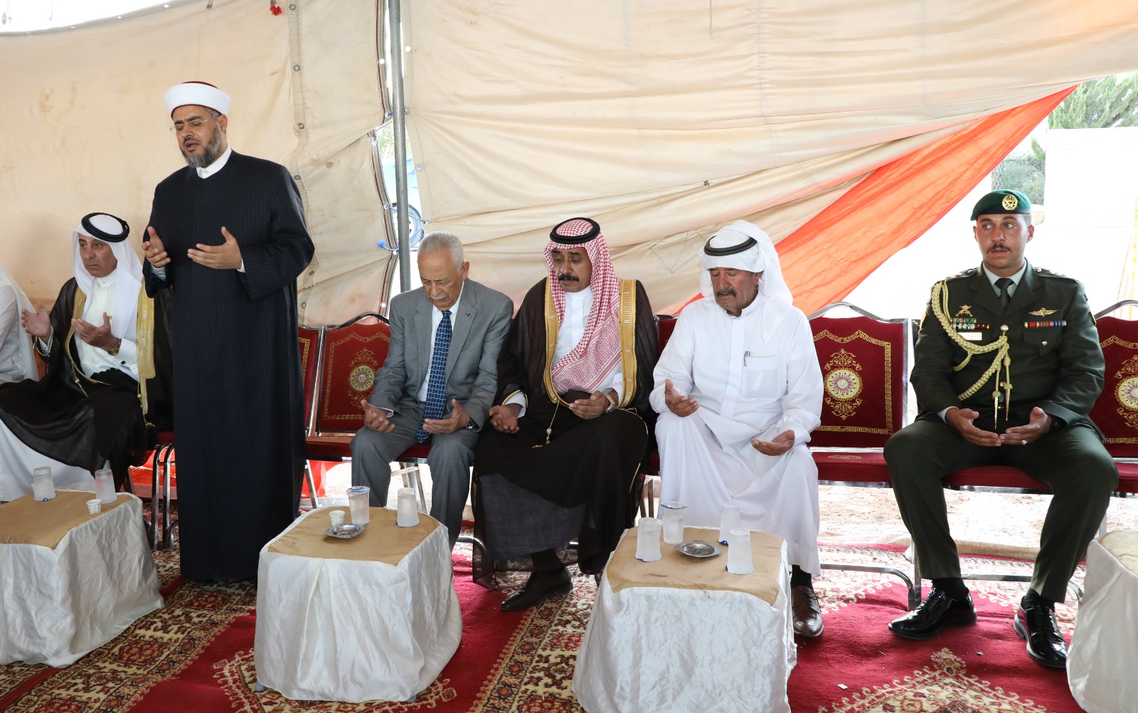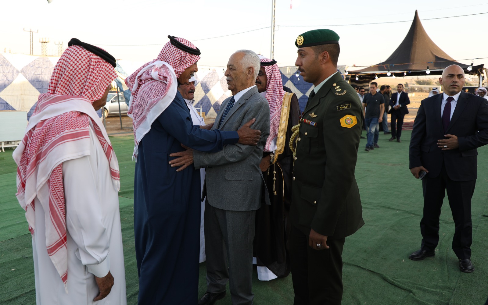 كما قدم رئيس الديوان الملكي الهاشمي واجب العزاء بالمرحومة فضة عيد القطيفان (ام مشعل ) والدة العميد المتقاعد شلاش احميدي الزبن وعمة العميد المتقاعد عواد القطيفان .