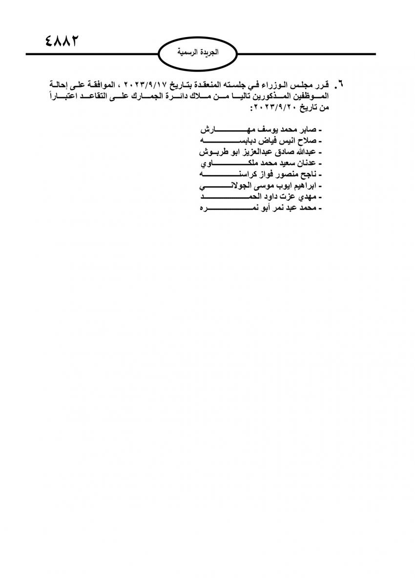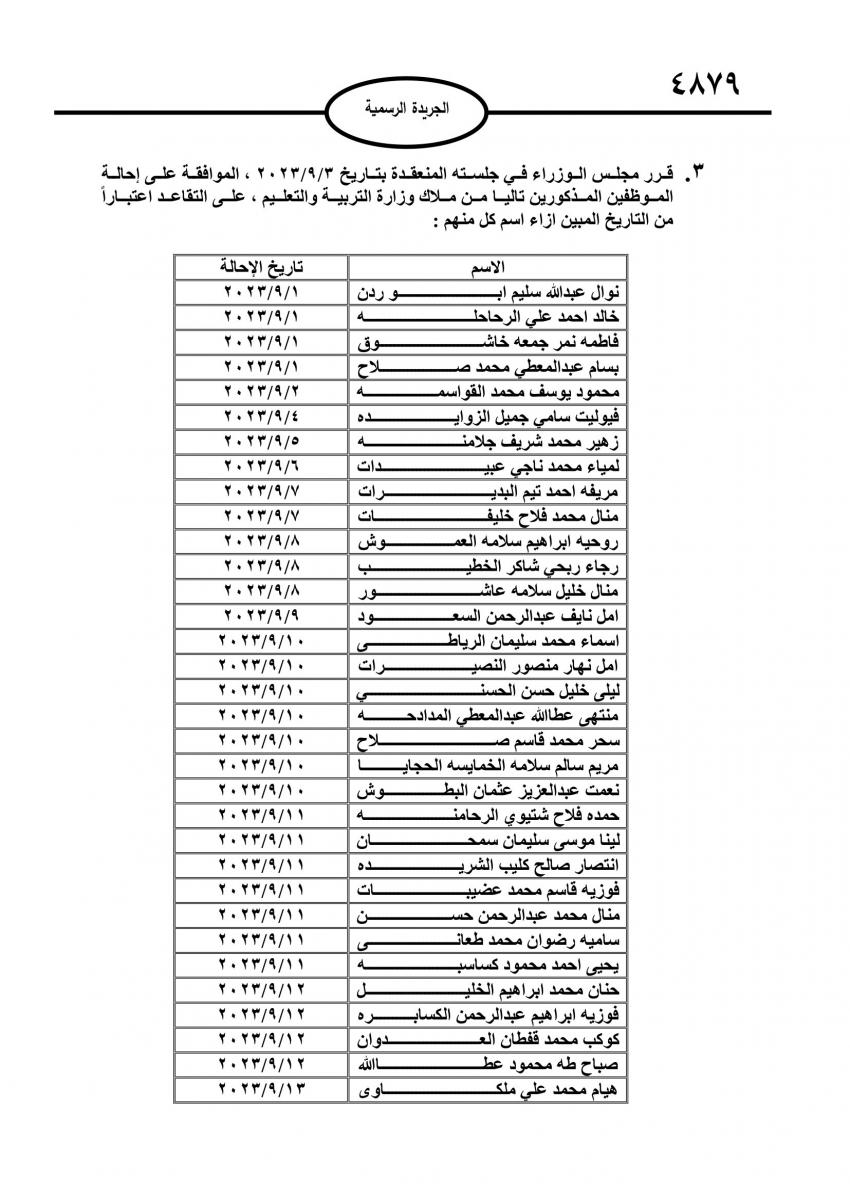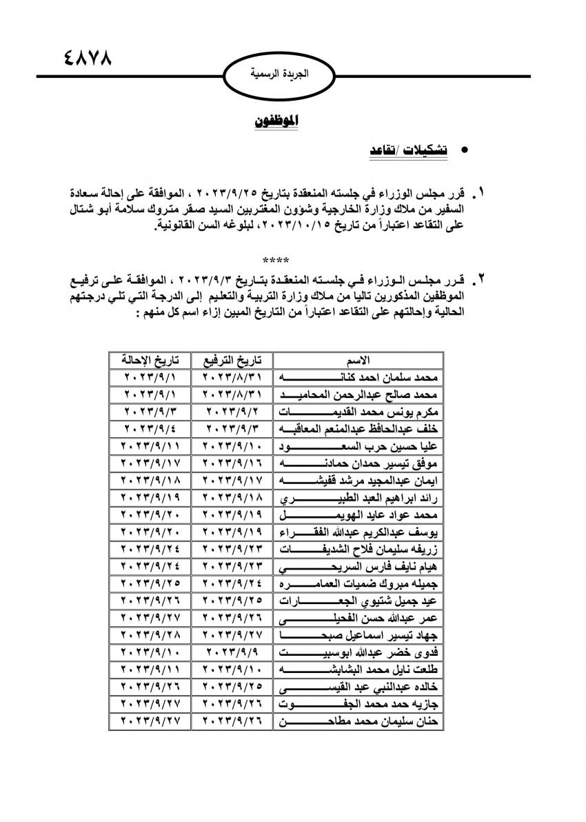 الراي نيوز  - صدر في عدد الجريدة الرسمية الصادر اليوم الأحد قرارات مجلس الوزراء باحالة عدد من موظفي الدولة إلى التقاعد.