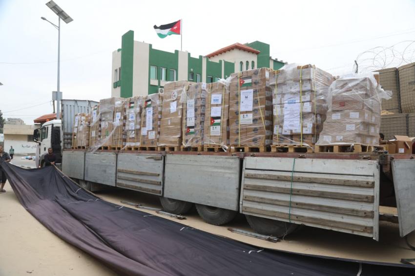 قافلة مساعدات تصل المستشفى الميداني الأردني في جنوب غزة