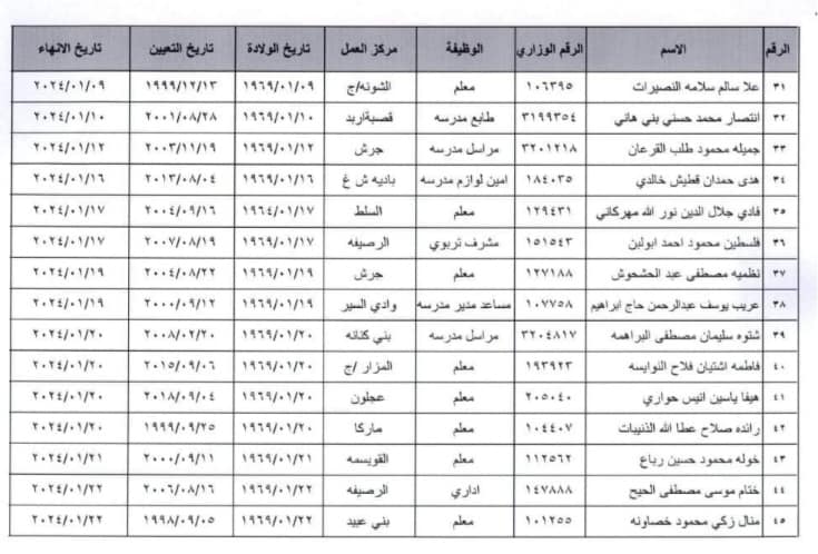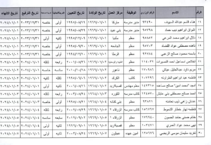 ترفيع وإنهاء خدمات 55 موظفا في التربية (أسماء)