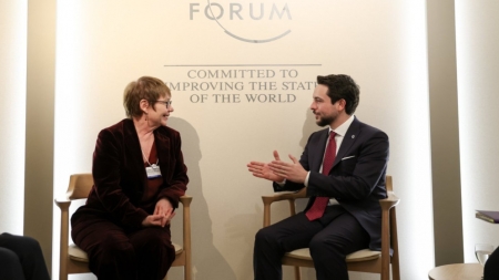 وثمن سموه، خلال اللقاء الذي عقد على هامش أعمال المنتدى الاقتصادي العالمي في دافوس بسويسرا، جهود البنك في دعم مشاريع تنموية في الأردن، لافتا إلى أهمية توسيع الشراكة بين البنك والقطاع الخاص.