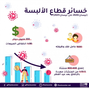 جاء هذا التراجع جراء غياب البرامج الحكومية، كالإعفاءات الضريبية وترتيب أجور المحلات بين المالكين والمستأجرين، وتحفيزات البنك المركزي للقطاعات الاقتصادية، مما أدى إلى إغلاق 700 منشأة ، والتي تعتمد على 1 إلى 3 عمّال. غالبيتهم فقدوا وظائفهم، بحسب نقيب أصحاب محلات الألبسة والأقمشة منير دية.