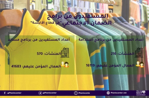 ووفق أرقام الضمان الاجتماعي، التي حصل عليها "المرصد العمّالي" فإنّ عدد المستفيدين من برنامج استدامة في قطاع الألبسة، بلغ 16119 عاملاً مؤمنا عليه في 216 منشأة في حين استفاد من برنامج مساند بإصداراته الثلاثة 41683 عاملاً وعاملة في 570 منشأة.