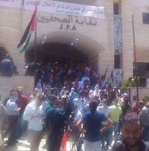 نظمت نقابة الصحفيين وقفة تضامنية  صباح اليوم أمام مقر النقابة، دعماً لصمود الأشقاء الفلسطينين وتنديداً بالجرائم الصهيونية ضد الصحفيين ووسائل الإعلام