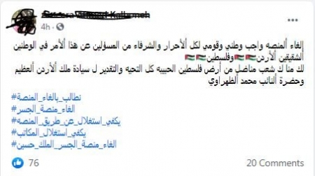 ومع تقدير المطالبين بإلغاء منصة التسجيل للسفر بين الأردن وفلسطيني لحرص الحكومة الأردنية، على إجراءات حماية البلاد من انتشار كورونا، طالبوا في الوقت نفسه بتوفير آلية كريمة للسفر عبر جسر الكرامة .