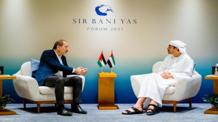 التقى نائب رئيس الوزراء وزير الخارجية وشؤون المغتربين أيمن الصفدي، الأحد، وزير الخارجية الإماراتي سمو الشيخ عبدالله بن زايد آل نهيان، على هامش أعمال منتدى صير بني ياس المنعقد في دبي.
