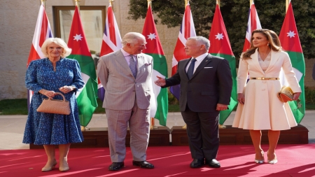 استقبل جلالة الملك عبدالله الثاني وجلالة الملكة رانيا العبدالله يستقبلان الأمير تشارلز، أمير ويلز ودوقة كورنوال في قصر الحسينية في بداية زيارتهما الرسمية إلى الأردن.