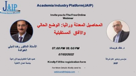 استضافت شركة منصة دمج الأكاديميا بالصناعة (JAIP ) الاستاذ الدكتور رضا شبلي الخوالدة - عميد كلية التكنولوجيا الزراعية بجامعة عمان الاهلية في ندوة حوارية حول المحاصيل المعدلة وراثيا: الوضع الحالي والافاق المستقبلية ، وذلك مساء الاثنين 7-2-2022 عبر منصة زووم .