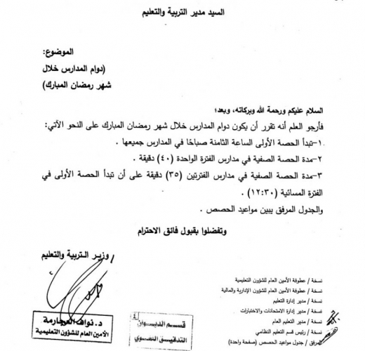 التربية تعلن دوام المدارس في رمضان (تفاصيل)