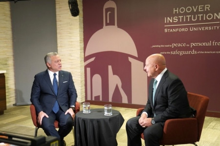 الرأي نيوز - أجرى جلالة الملك عبدالله الثاني خلال زيارته إلى الولايات المتحدة الأميركية، الأسبوع الماضي، مقابلة مع الجنرال المتقاعد هربرت ماكماستر ضمن البرنامج العسكري المتخصص (Battlegrounds)، الذي ينتجه معهد هوفر في جامعة ستانفورد الأميركية.