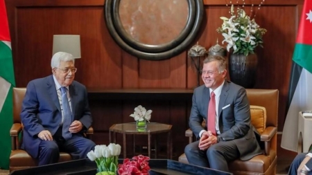 استقبل جلالة الملك عبدالله الثاني اليوم الاربعاء الرئيس الفلسطيني محمود عباس في قصر الحسينية.