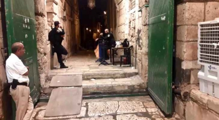 وكانت قوات الاحتلال اغلقت بعد عصر أمس الجمعة جميع أبواب المسجد الأقصى، وأخرجت جميع المصلين وموظفي دائرة الأوقاف الإسلامية بالقوة وحرمتهم من أداء صلاتي المغرب والعشاء داخله.