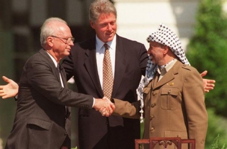 - أشاعت المصافحة التي حصلت في حديقة البيت الأبيض إيذانا بالتوقيع على أول اتفاقات اوسلو التاريخية، الأمل بأن السلام بين اسرائيل والفلسطينيين أصبح قريباً... ولكن وبعد 25 عاما تبخرت هذه الآمال.