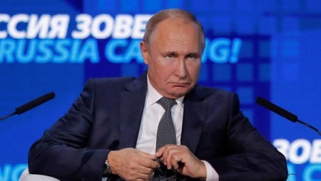لكن بوتين أكد خلال منتدى مالي في موسكو أن الغرب مستعد للصفح عن أخطاء ساسة أوكرانيا لأن ذلك يصب في صالح الرواية المعادية لروسيا والتي تروجها كييف. (رويترز)