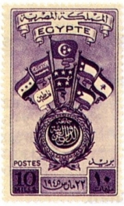 في البحث في الارشيف وجدت الطابع التذكاري الذي يخلد تأسيس جامعة الدول العربية الذي صدر في القاهرة ،بتصميم جميل يحمل اعلام الدول التي وقعت على ميثاق تأسيس جامعة الدول العربية في 22 آذار 1945 الذي اصبح عيدا للنهضة العربية الى سنوات حتى بداية السبعينات.