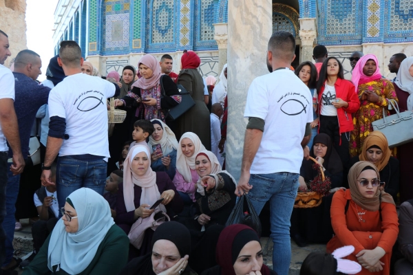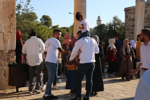 وبدوره، قال مسؤول النشاط الشبابي في التجمع الوطني المسيحي في الاراضي المقدسة، نضال عبود، ان نشطاء التجمع تواجدوا في الحرم القدسي الشريف في اول ايّام عيد الاضحى المبارك للمساهمة في الدفاع عنه في ظل المخاطر التي يفرضها الاحتلال ومستوطنيه، وايضاً لتوزيع الحلوى على المواطنين والمشاركة في الاحتفال بالعيد ورسم الابتسامات على شفاه أطفال القدس بالرغم من اعتداء الاحتلال على المرابطين في المسجد الاقصى المبارك. وشدد عبود ان القدس ستبقى دائماً متوحدة في مواجهة المخاطر الخارجية والداخلية التي تحدق بها.