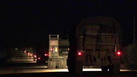 أفاد نشطاء المعارضة السورية بأن رتلا تركيا ضخما يتكون من 25 من الآليات والمعدات والشاحنات دخل من معبر باب الهوى الحدودي إلى الأراضي السورية، لكنه توقف بسبب قصف جوي.