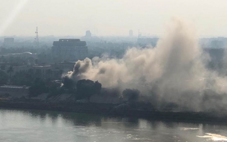 ارتفعت أعمدة الدخان من داخل المنطقة الخضراء المحصنة وسط العاصمة بغداد اليوم الجمعة، جراء حريق كبير.