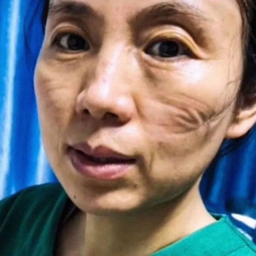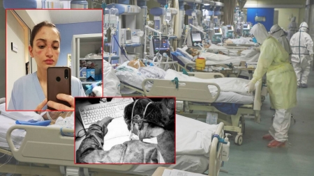 وكشفت صحيفة «ديلي ميل» البريطانية عن صور أظهرت علامات في وجه إحدى الممرضات من أثر القناع، وكشفت عن أخرى نامت على مكتبها بسبب شدة الإرهاق، في وقت تحارب فيه إيطاليا لوقف تفشي الفيروس القاتل. ونشرت الممرضة أليسيا بوناري صورة لوجهها الذي تركت المعدات الواقية آثارها عليه بعد ارتدائها لساعات طويلة، أثناء نوبة عمل في ميلانو. وروت تفاصيل حياتها اليومية في المستشفى من عدم قدرتها على الشرب أو الذهاب إلى الحمام لمدة ست ساعات، بعد ارتداء معدات الحماية الخاصة بها.