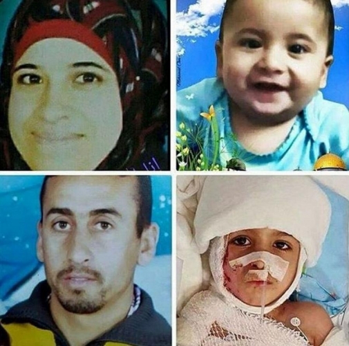 وقام مستوطنين باشعال حريقَ في منزل عائلة الدوابشة في قرية دوما، بمحافظة نابلس في الضفة الغربية، وقد توفي الرضيع علي وعمره 18 شهراً، وأصيب والداه وأخاه أحمد (4 سنوات) بجروح خطيرة، وتوفي لاحقاً والد الطفل ورب العائلة سعد دوابشة في مستشفى (سوروكا) في بئر السبع، بعد أن أصيب جسمه بحروق من الدرجة الثالثة، ولحقت أضرار بنسبة 80% من جسمه بشكل عام، وتوفيت لاحقاً الأم، ريهام حسين دوابشة في المستشفى، بعد أن أعلن صباح يوم 6 من شهر أيلول/ سبتمبر عن وفاتها في مستشفى (تل هشومير) في تل الربيع المحتلة.