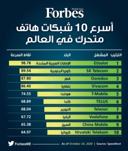 شبكات اتصالات الامارات وكوريا وقطر الأسرع في العالم