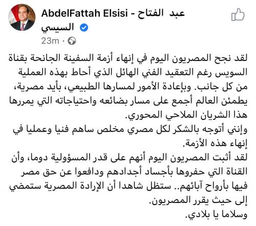نشر الرئيس المصري عبد الفتاح السيسي تغريدة على حسابه على تويتر كتب فيها :