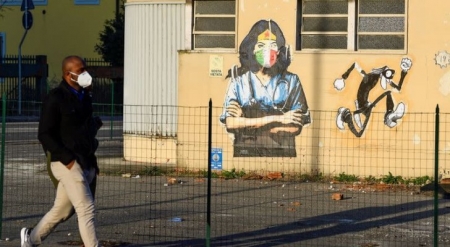 ويخضع القسم الأكبر من إيطاليا لقيود صارمة (إغلاق المطاعم والمقاهي وفرض قيود على التنقلات...) في محاولة من الحكومة للحد من تفشي العدوى في وقت تجتاز فيه البلاد موجتها الوبائية الثالثة.
