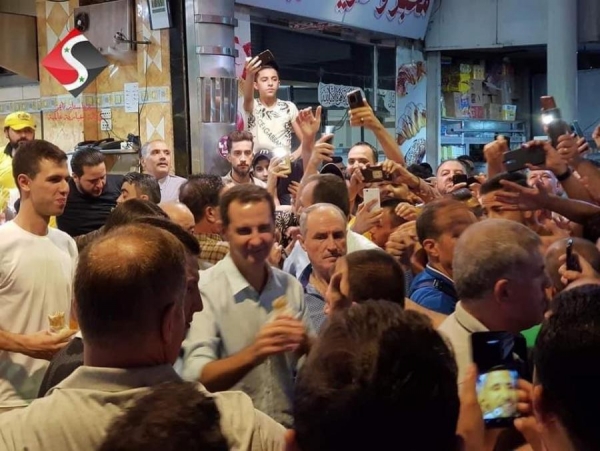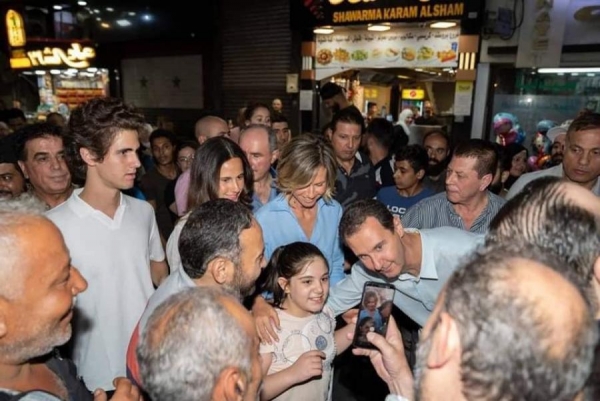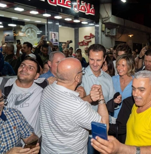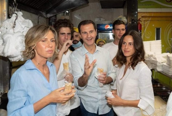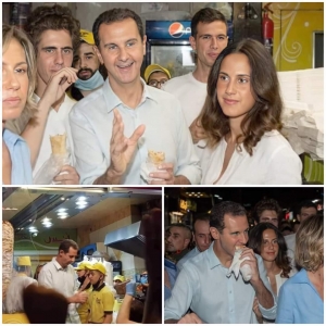 بعد فوزه بولاية رابعة ..بشار الاسد وعائلته يتجولون في العاصمة السورية ويتناولون الشاورما