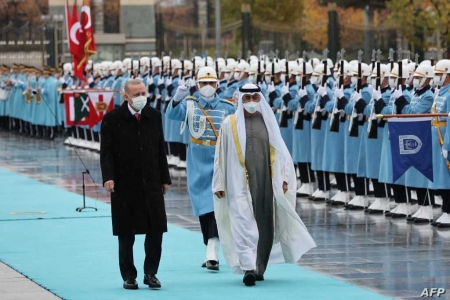 أجرى الرئيس التركي رجب طيب أردوغان مراسم الاستقبال الرسمية لولي عهد أبوظبي الشيخ محمد بن زايد آل نهيان في القصر الرئاسي عقب وصوله إلى أنقرة اليوم الأربعاء.