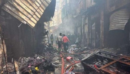 أصيب 12 شخصا في حريق ضخم شب في سوق شعبية في محافظة الإسكندرية، شمالي مصر، وأسفر عن تدمير عدة محلات وعقارين.