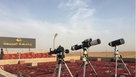 وأكد مدير المرصد الفلكي في جامعة المجمعة أن هناك كسوفًا جزئيًّا للشمس، كانت ذروته في الحادية عشرة و41 دقيقة.