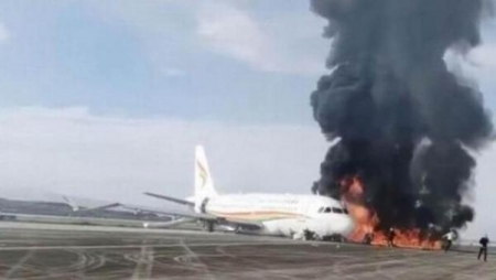خروج طائرة صينية عن المدرج واشتعال النيران فيها