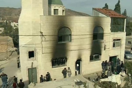 مستوطنون يحطمون نوافذ مسجد ويحرقون مركبة في نابلس