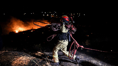 من جهتها تكافح فرق الإطفاء في اليونان لإخماد حرائق اندلعت في مناطق الغابات بسبب ارتفاع درجات الحرارة إلى 40 درجة مئوية.