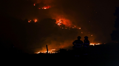 وحاول سكّان إبطاء تقدّم النيران، في وقتٍ كان الحريق يمتدّ في غابات مجاورة، وفقًا لصور بثّتها قنوات محلّية.