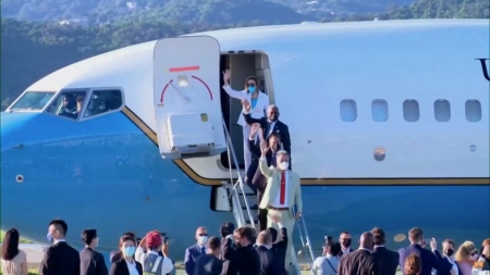 وكان وفدها قد توقف في تايوان في وقت متأخر الثلاثاء بعد أن زار كلا من سنغافورة وماليزيا.