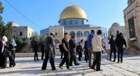 وقالت دائرة الأوقاف الإسلامية بالقدس، في بيان، إن عشرات المستوطنين المتزمتين اقتحموا منذ الصباح الباكر، ساحات المسجد الأقصى على شكل مجموعات متتالية وذلك من جهة باب المغاربة، ونظموا جولات مشبوهة وأدوا طقوسا تلمودية استفزازية في باحاته، خصوصا في المنطقة الشرقية، وذلك بحراسة مشددة من شرطة الاحتلال الإسرائيلي الخاصة المدججة بالسلاح.