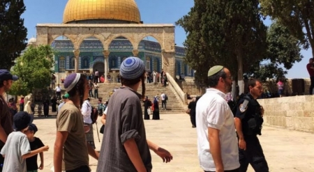 وأفادت دائرة الاوقاف الإسلامية بالقدس في بيان بأن عشرات المستوطنين المتطرفين اقتحموا المسجد الأقصى من جهة باب المغاربة، وذلك بحراسة مشددة من شرطة الاحتلال الاسرائيلي الخاصة المدججة بالسلاح، ونفذوا جولات مشبوهة، وأدوا طقوسا تلمودية استفزازية في باحاته وسط التصدي لهم بالطرد وهتافات التكبير الاحتجاجية من قبل المصلين والمرابطين وحراس المسجد الاقصى المبارك.