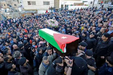 " الله يخون الموت عوايده يأخذ الغالي... دنيانا يا ماخذت رجال خذت شيوخ ومخاتير "... كلمات نبطية رددتها الأم المكلومة بصوت مخنوق بالكاد تخرج من فمها وهي تنظر بعينين دامعتين إلى جثمان ابنها العسكري العقيد عبدالرزاق الدلابيح الملفوف بعلم بلاده الأردن، والمسجى أمامها بعد ان اغتالته رصاصة أثناء الاحتجاجات الأخيرة في منطقة الحسينية بمحافظة معان جنوب الأردن
