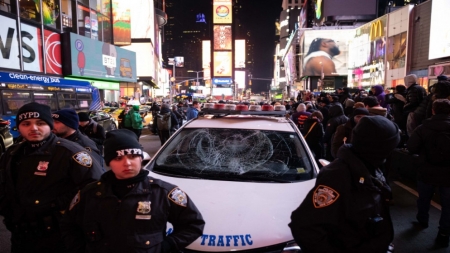 كما تجمع قرابة 100 شخص في تايمز سكوير بنيويورك ورددوا شعارات مماثلة ورفعوا لافتات كتب عليها "ضعوا حدا لإرهاب الشرطة"