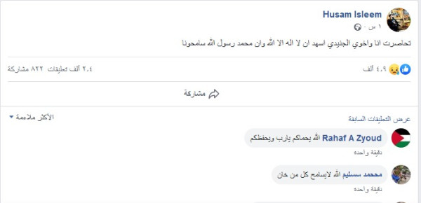 وقال الشاب سليم: "تحاصرت أنا وأخوي الجنيدي، أشهد أن لا إله إلا الله وأن محمد رسول الله سامحونا"