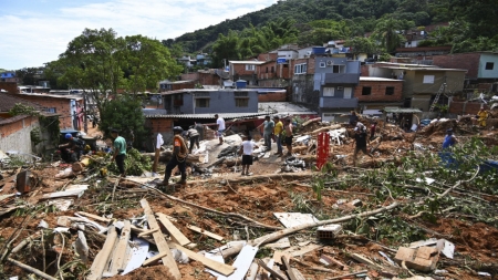 بضحايا الفيضان الذي سببته الأمطار الغزيرة في المناطق الساحلية بولاية ساو باولو جنوب شرق البرازيل، وأسفر عن وقوع عدد من الضحايا والإصابات