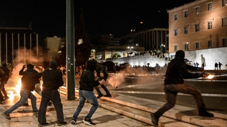 وفي وقت لاحق الجمعة، اشتبكت شرطة مكافحة الشغب مع مجموعة صغيرة من المتظاهرين وسط أثينا، على هامش تجمع على ضوء الشموع تكريما للضحايا
