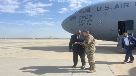 وقال أوستن عبر تويتر بعد وصوله بغداد "أنا هنا لأعيد تأكيد الشراكة الاستراتيجية بين الولايات المتحدة والعراق بينما نتحرك نحو عراق أكثر أمنًا واستقرارًا وسيادة"