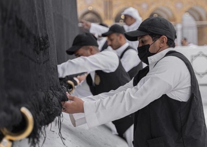 بالصور .. صيانة كسوة الكعبة المشرفة استعداً لشهر رمضان