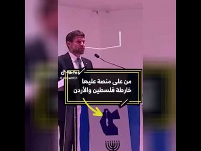 وأشار إلى أن الخطر يكمن في المنصة التي قام بالإلقاء عليها، وهي تحمل خارطة فلسطين والأردن أي انها اسرائيل الكبرى ، مستنكرًا هذه التصريحات، وقال : ما فشر ..!