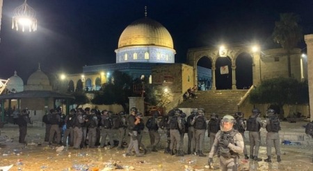 الرأي نيوز - أفاد مصدر في فلسطين، باقتحام قوات الاحتلال الإسرائيلي لباحات المسجد الأقصى، والطرق على أبواب المصلى القبلي الذي يضم المعتكفين داخله.