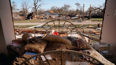 قبل أسبوع، ضرب إعصار ولاية ميسيسيبي متسببا بمقتل 25 شخصًا ومخلفا أضرارا جسيمة بالممتلكات. وتفقد الرئيس جو بايدن الموقع الجمعة