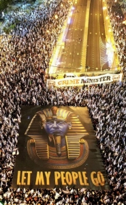 وشق المتظاهرون في تل أبيب طريقهم في مسيرة من ساحة بيما إلى المظاهرة الرئيسية في شارع كابلان، وارتدى العشرات منهم بزات سوداء ملثمين، وساروا خلف لافتة كتب عليها فرق غضب الديكتاتور، في إشارة إلى الحرس الوطني الذي وافقت الحكومة الإسرائيلية هذا الأسبوع على إنشائه تحت ديوان وزير الأمن الوطني.